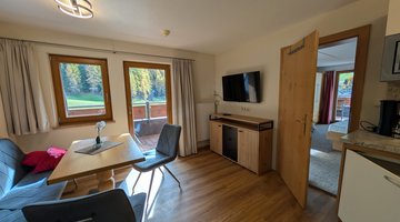 Neben unseren Appartements und Komfortzimmern bieten wir Ihnen die kostenlose Benützung von Sauna, Dampfbad und Infrarotkabine. Außerdem gibt es für Sie in unserem Haus eine Ski- bzw. Bikegarage sowie gratis WLan. Einen Spielplatz für Kinder finden Sie im 100 m entfernten Hotel "Sunny".